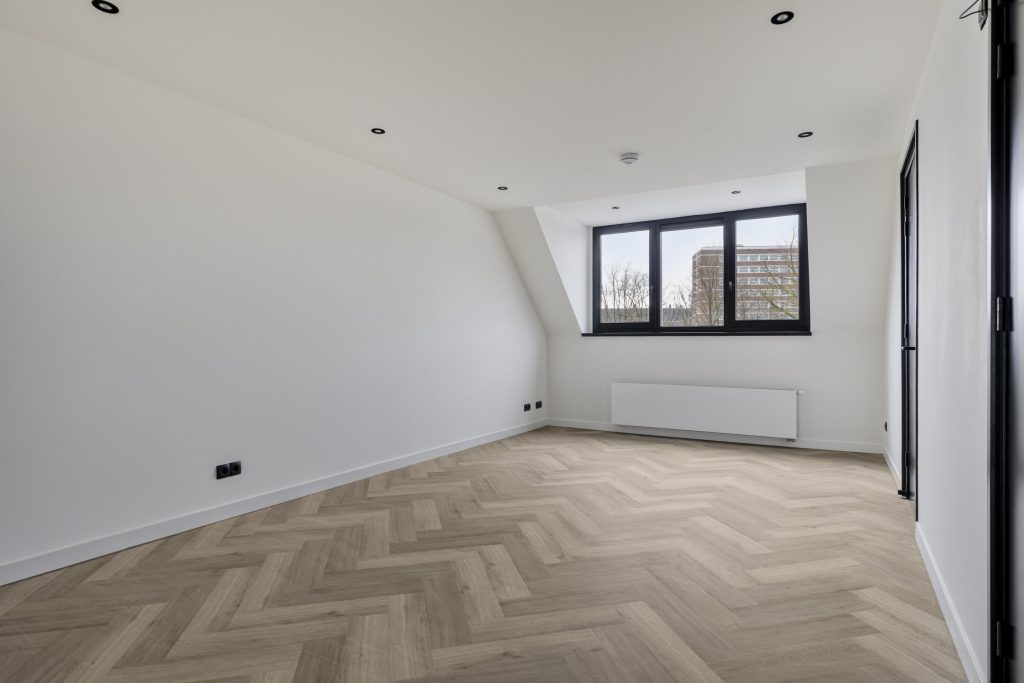 De woning beschikt over twee comfortabele slaapkamers. De slaapkamer aan de voorzijde biedt eveneens een prachtig uitzicht en is afgewerkt met plafondspots. De tweede slaapkamer ligt aan de rustige achterzijde en is eveneens stijlvol afgewerkt.