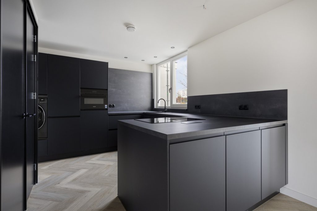 De open keuken vormt het hart van de woning en is uitgevoerd met hoogwaardige inbouwapparatuur van Siemens. U beschikt over een inductiekookplaat met geïntegreerde afzuiging, oven, koel-vriescombinatie en vaatwasser. Daarnaast is er een wasmachineaansluiting aanwezig en zijn er praktische stopcontacten verwerkt in het werkblad. Dankzij de vele kasten is er volop opbergruimte. Design en functionaliteit gaan hier naadloos samen.