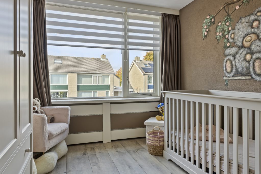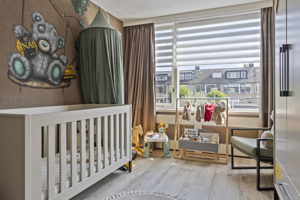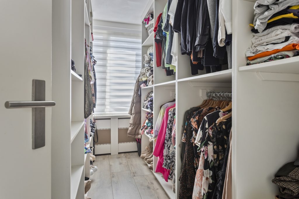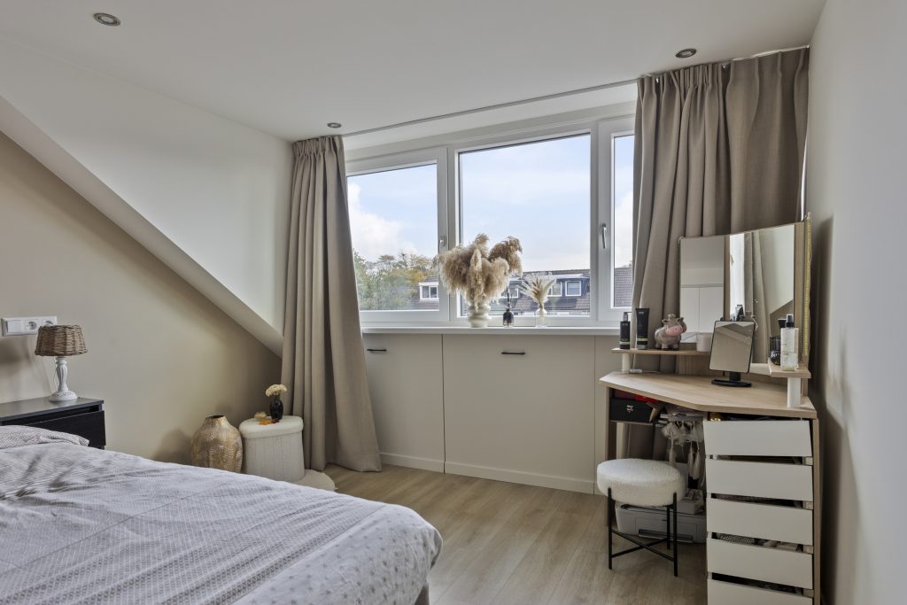 De zolder is in 2024 volledig aangepakt en tot een prachtige woonverdieping getransformeerd. Hier bevindt zich de royale master bedroom, bereikbaar via een schuifdeur. De ruimte oogt extra ruim door de kunststof dakkapel (2024, over de volledige breedte geplaatst) en de schuine kap die een speels effect geeft.