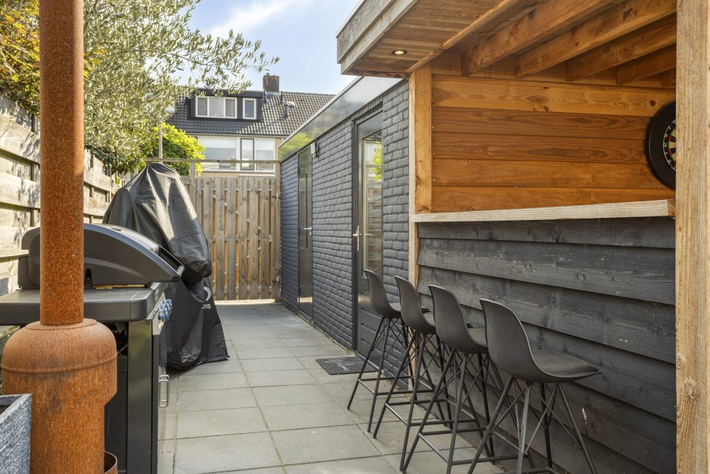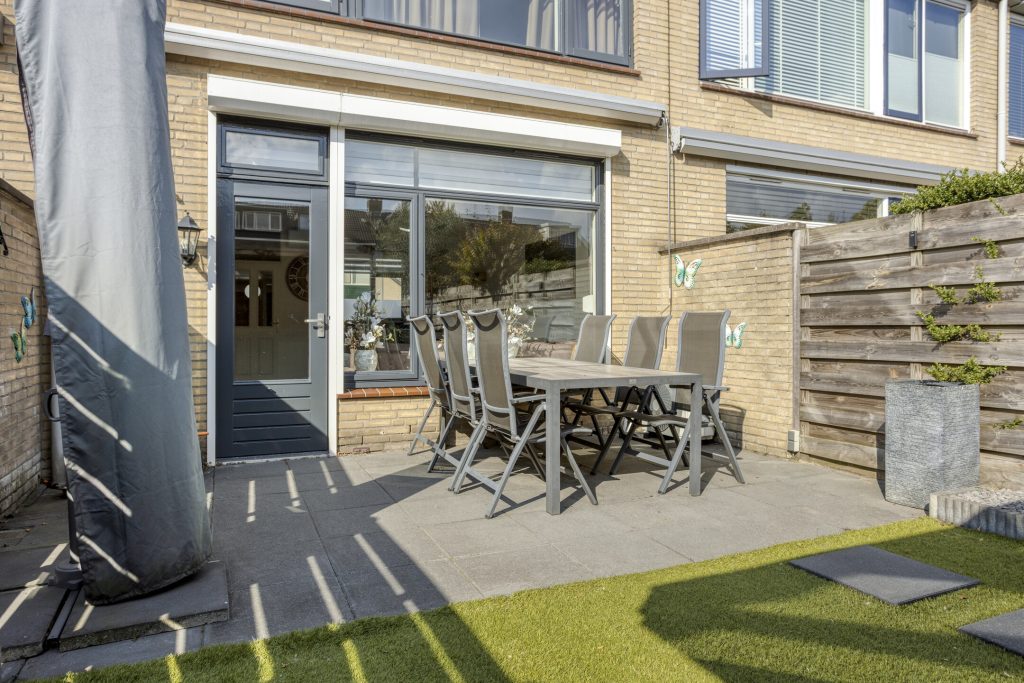 De achtertuin is in 2021 volledig vernieuwd en voorzien van betontegels, kunstgras en een overkapping. Via de tuin heb je toegang tot de garage en achterom. Rolluiken en zonwering zorgen voor extra comfort, terwijl het schilderwerk buiten in 2024 nog is gedaan.