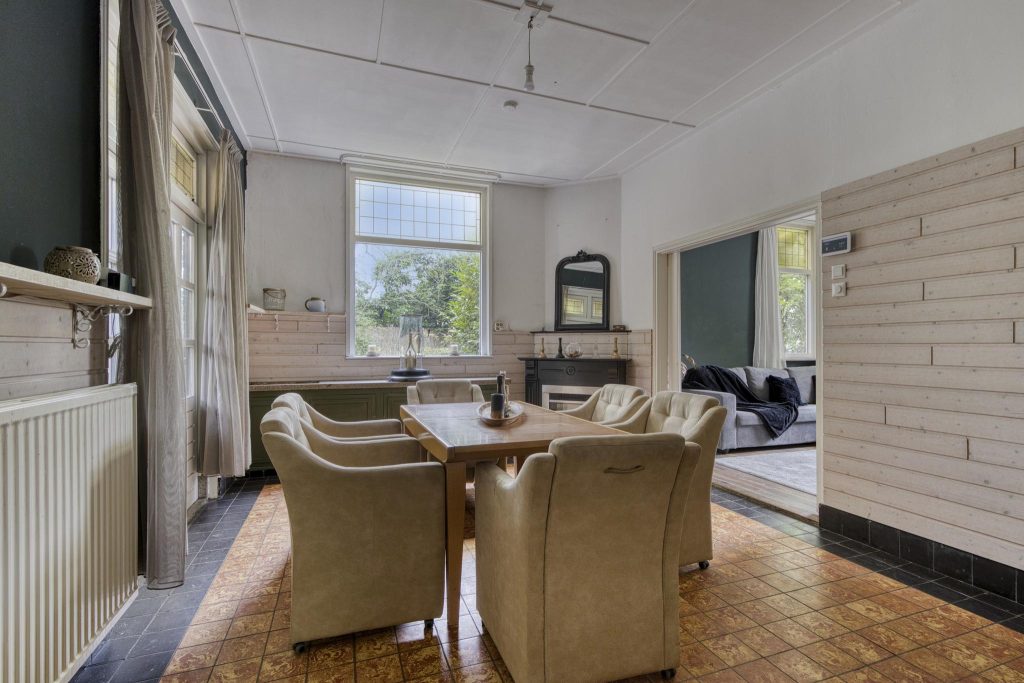 – Er zijn nog diverse authentieke elementen aanwezig, zoals o.a. glas-in-loodramen en originele tegelvloer in de eetkamer;