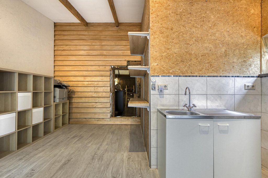 – Multifunctionele kamer met keukenblok, meterkast en middels openslaande deuren toegang tot de tuin.