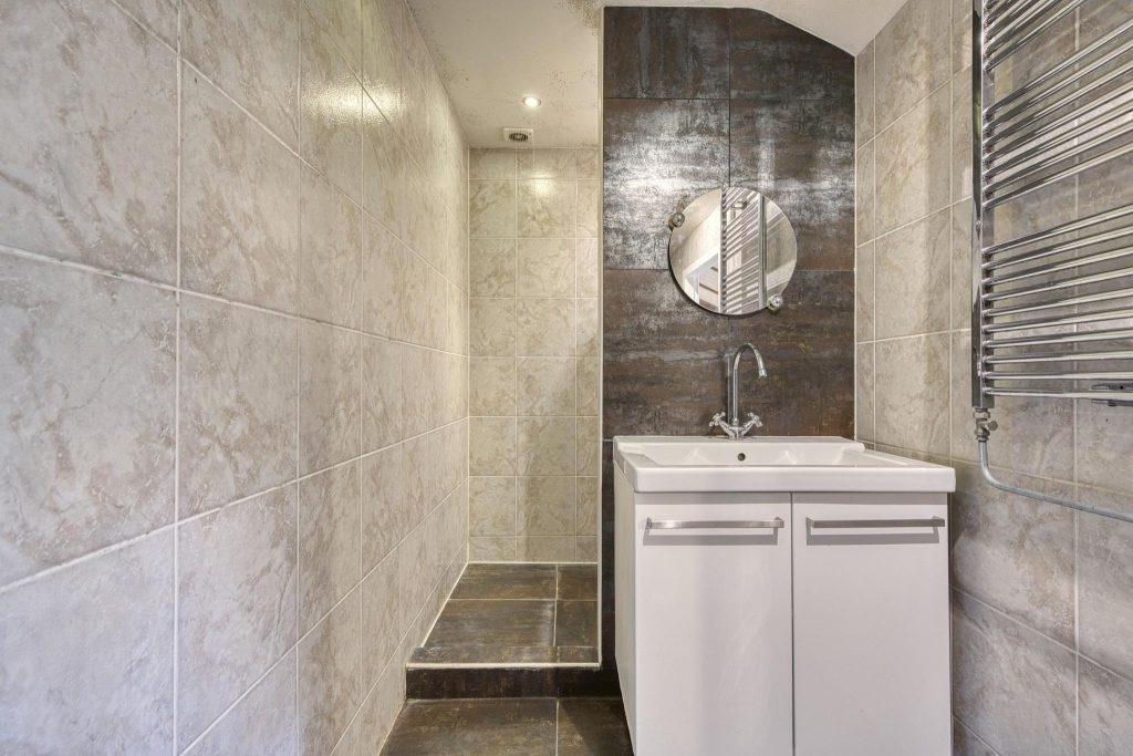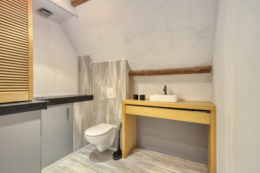 – Toilet I voorzien van zwevend toilet, designradiator en tegelvloer.