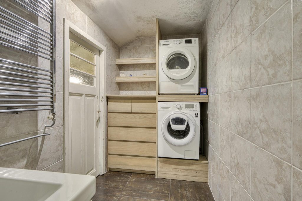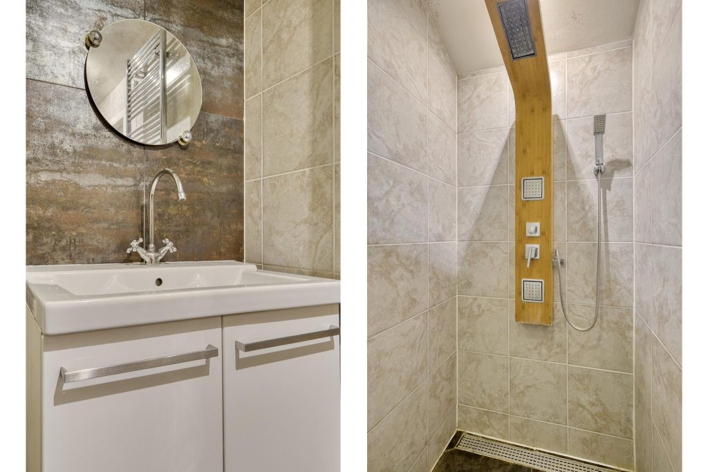 – Badkamer met inloopdouche met regendouche en handdouche, wastafelmeubel, aansluitingen ten behoeve van wasapparatuur, spots en designradiator.