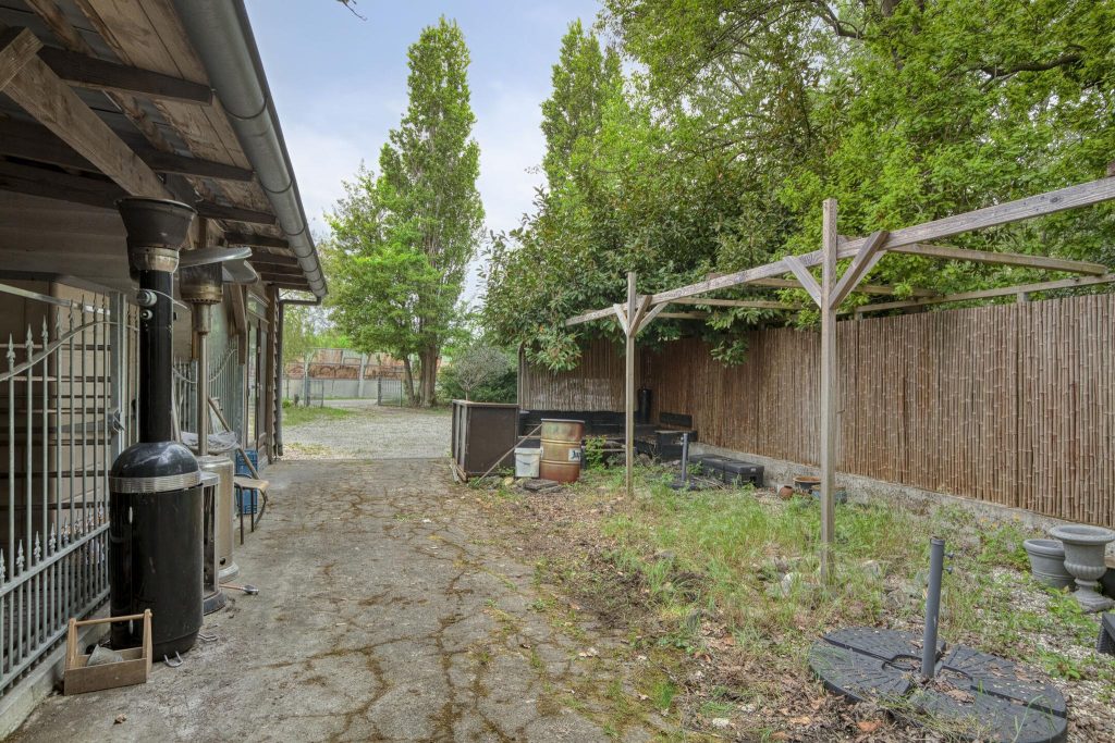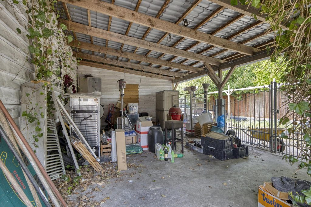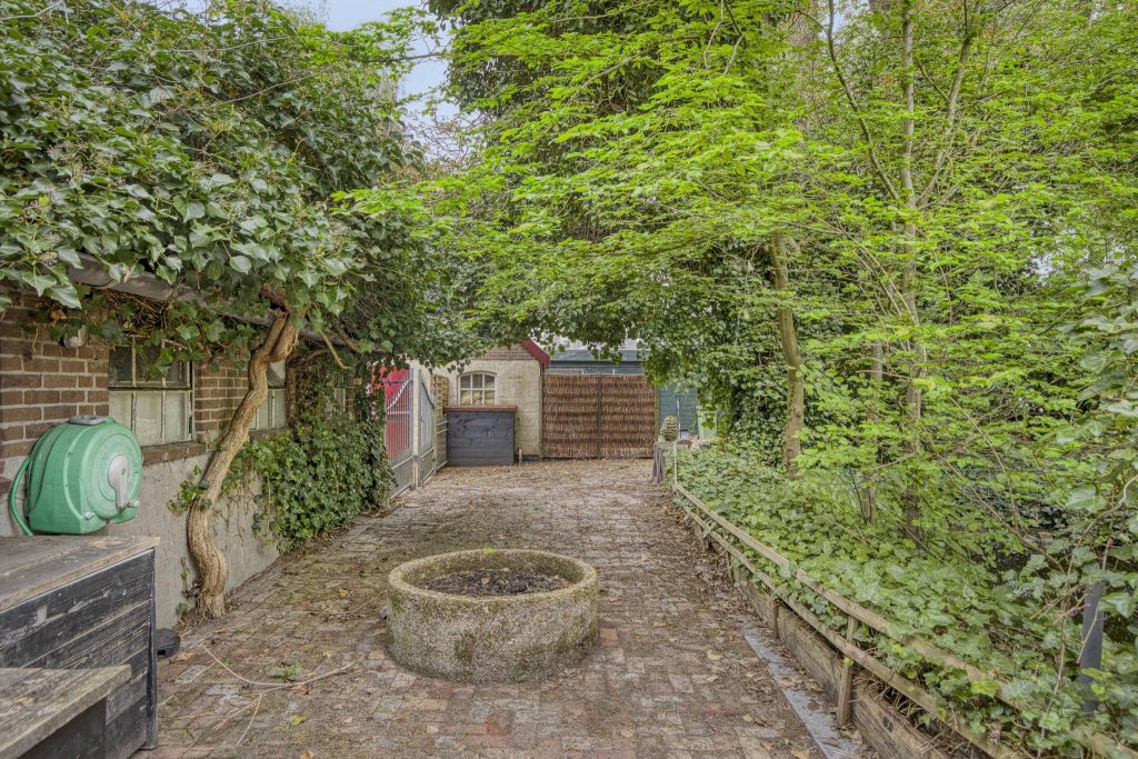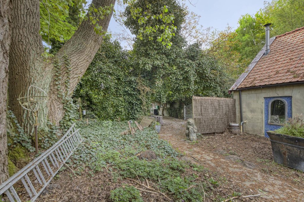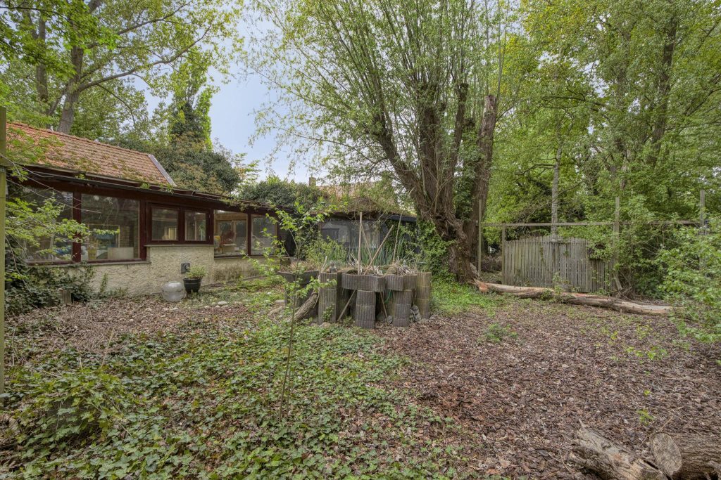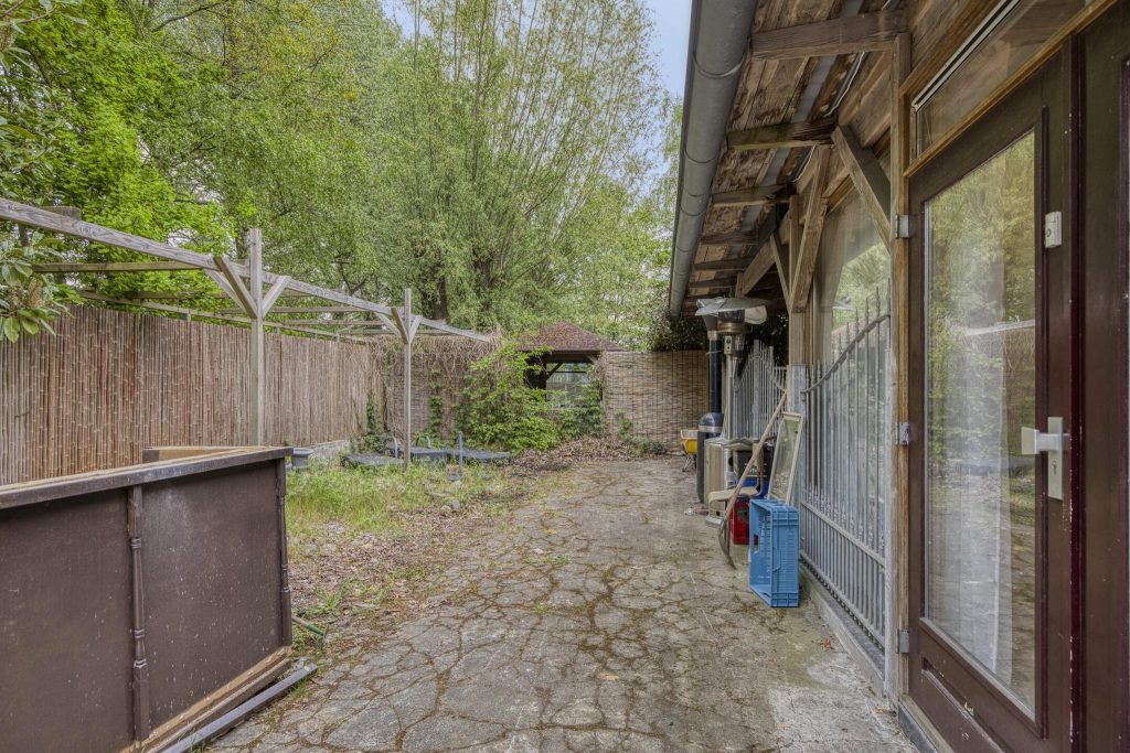– Riante achtertuin met vijver, borders met beplanting, buitenkeuken, meerdere overkappingen, terrassen, bergingen, multifunctionele ruimte van ca. 185 m² en bestrating.