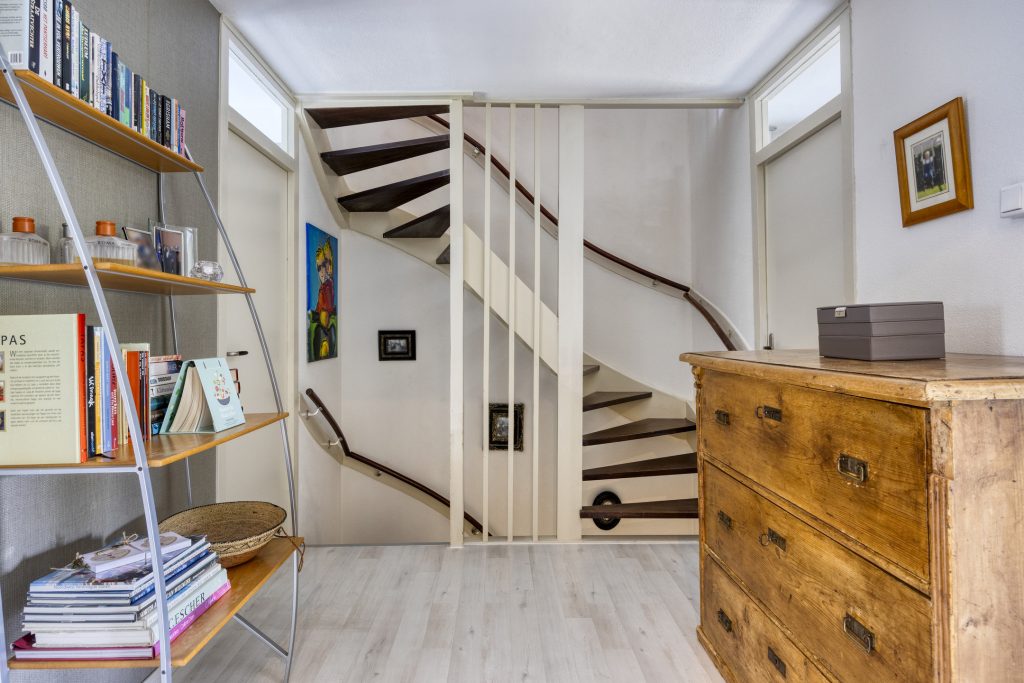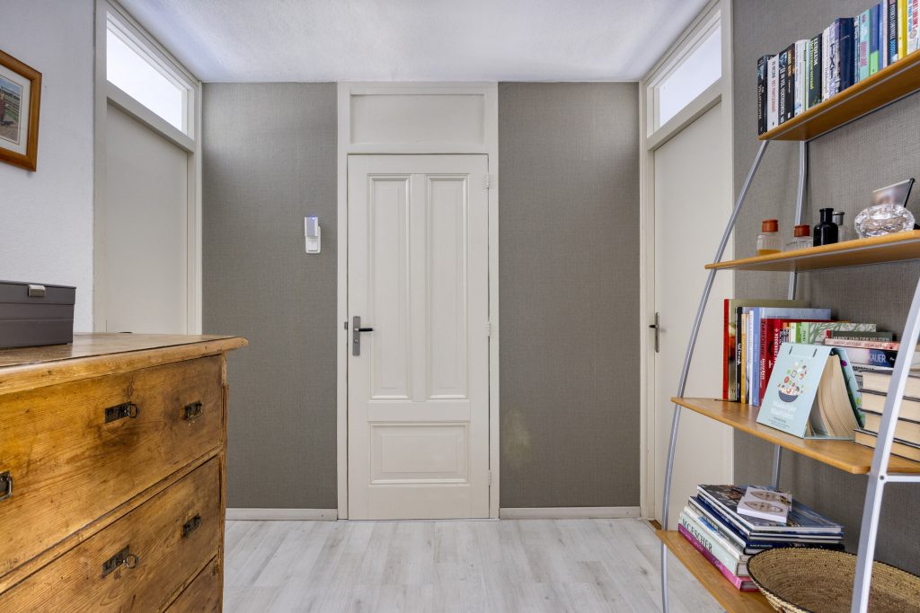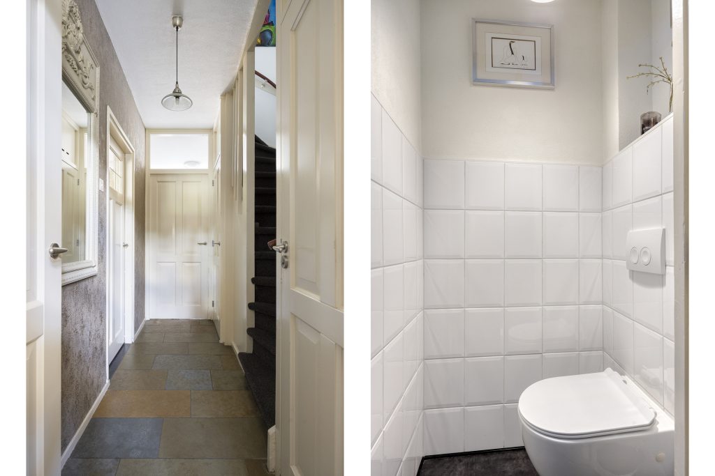 Entree met tochtportaal, meterkast en via de hal toegang tot het toilet, trapkast, dicht keuken, woonkamer en trapopgang naar de eerste verdieping.