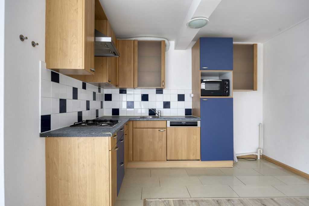 De open keuken is compleet uitgerust met een 4-pits gaskookplaat, spoelbak, kastruimte, koelkast én vaatwasser. Ideaal voor wie comfortabel wil koken en wonen zonder concessies te doen aan gemak.