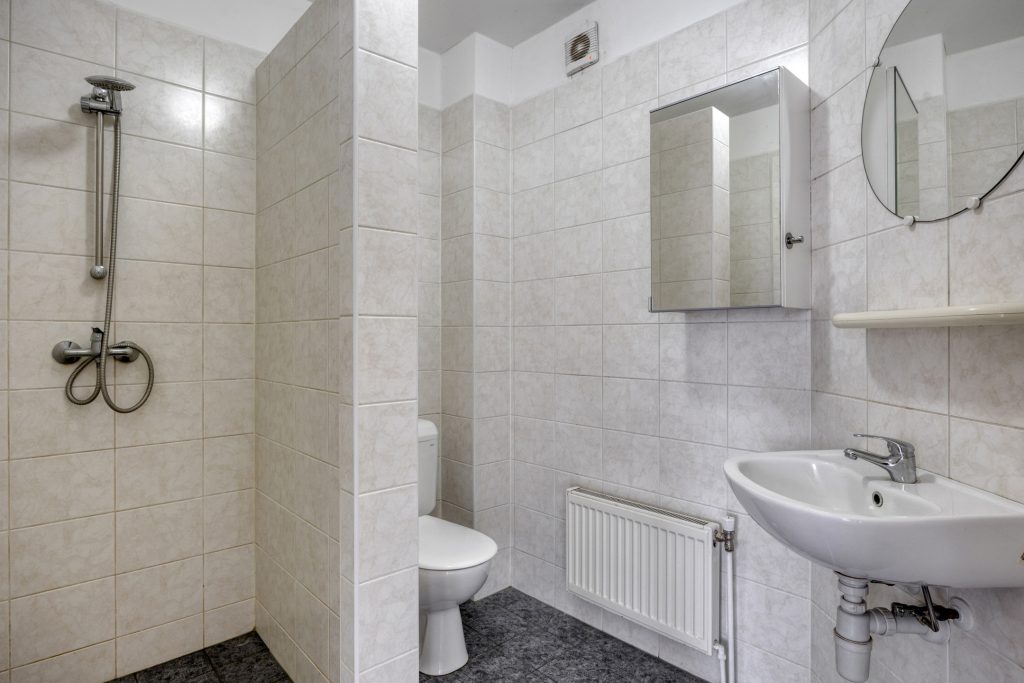 De studio beschikt over een afgesloten badkamer, voorzien van een douche, toilet en wastafel. Alles wat je nodig hebt, overzichtelijk en netjes samengebracht in een eigen privéruimte.