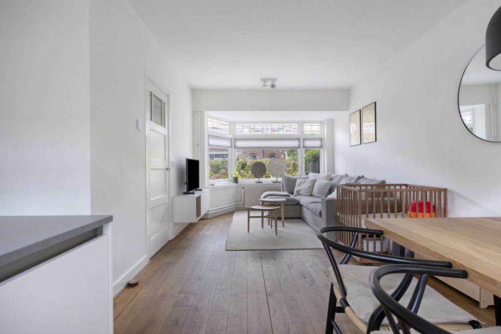 Bij binnenkomst valt direct de prachtige granito vloer in de hal op. Originele glas-in-loodramen, paneeldeuren en een erker aan de voorzijde geven de woning die typische jaren ’30 uitstraling.