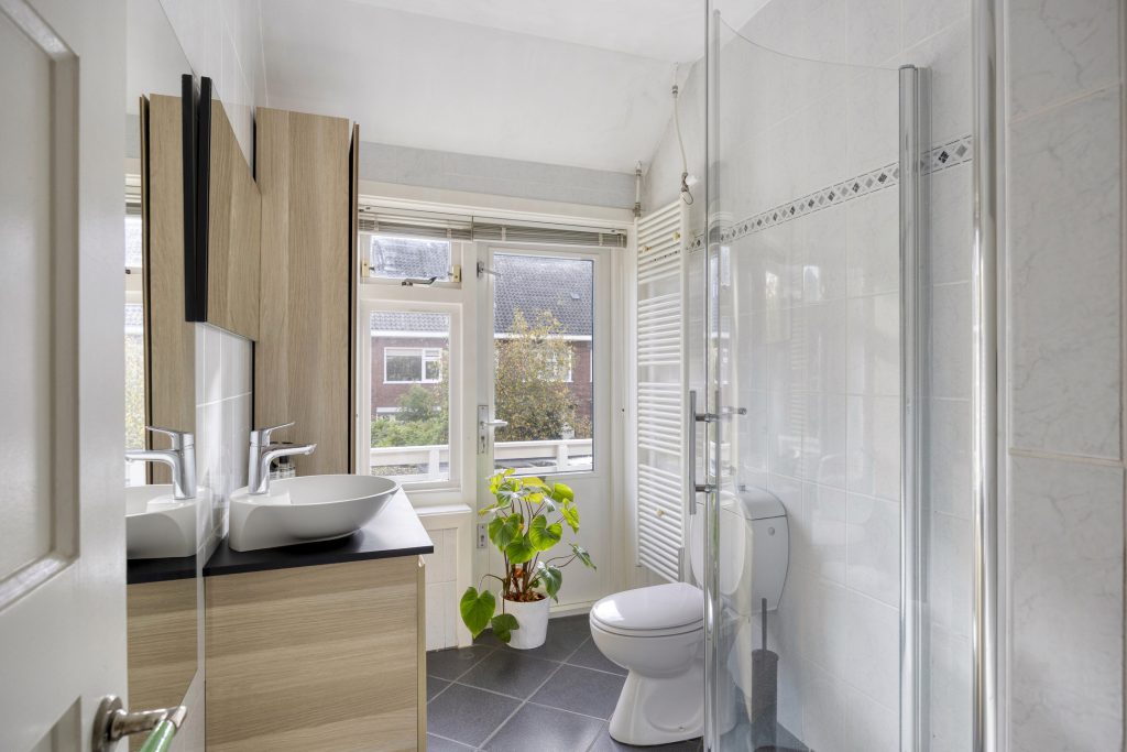 Op de eerste verdieping ligt een mooie parketvloer en vind je twee fijne slaapkamers en een verzorgde badkamer met douchecabine, wastafelmeubel en tweede toilet.
