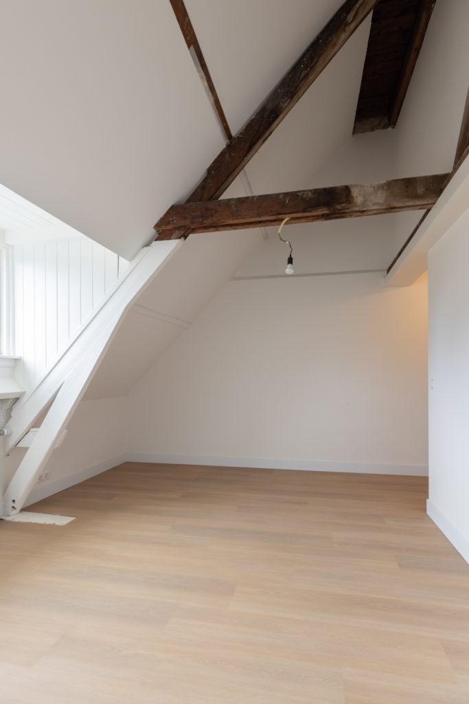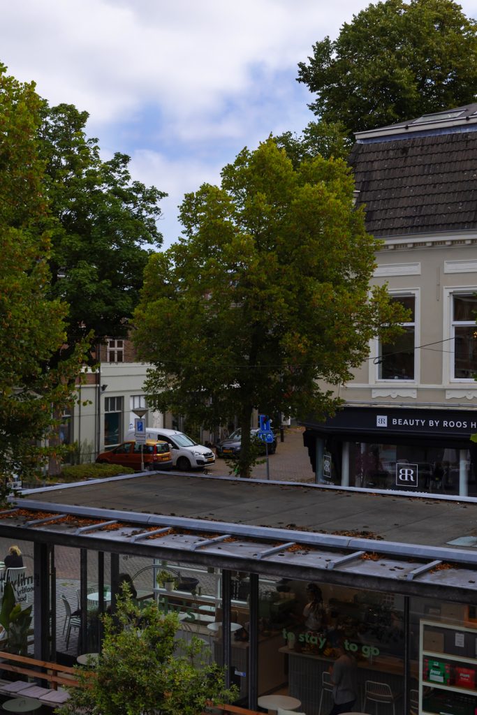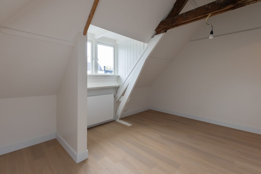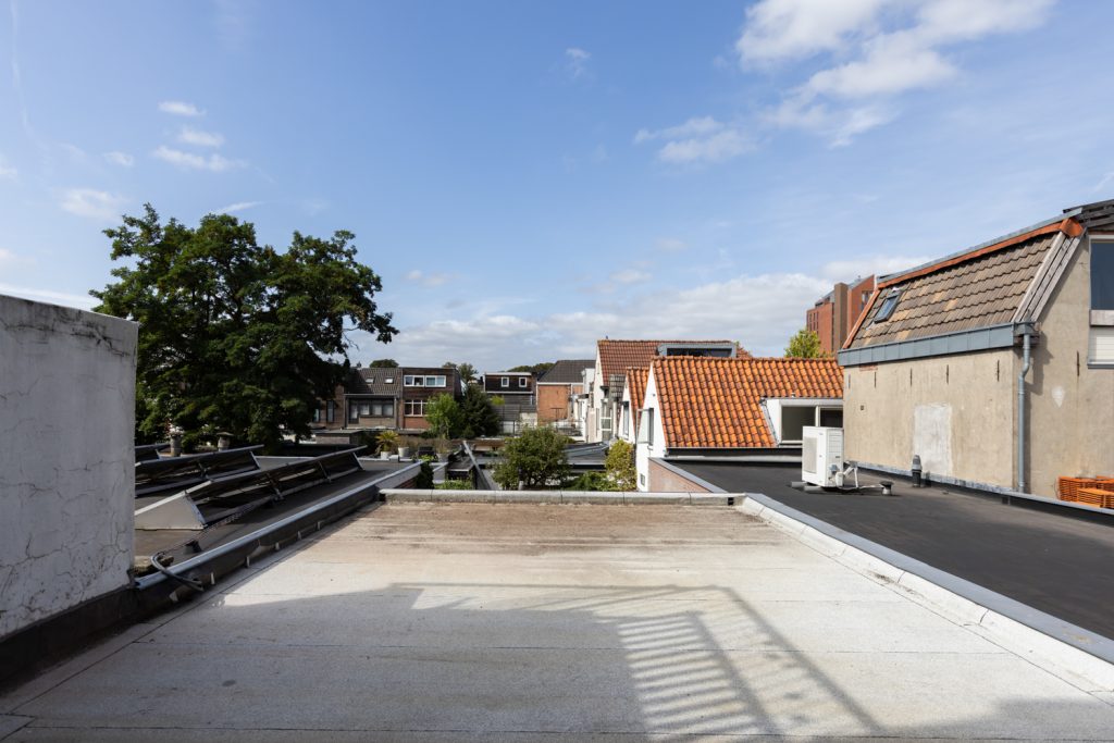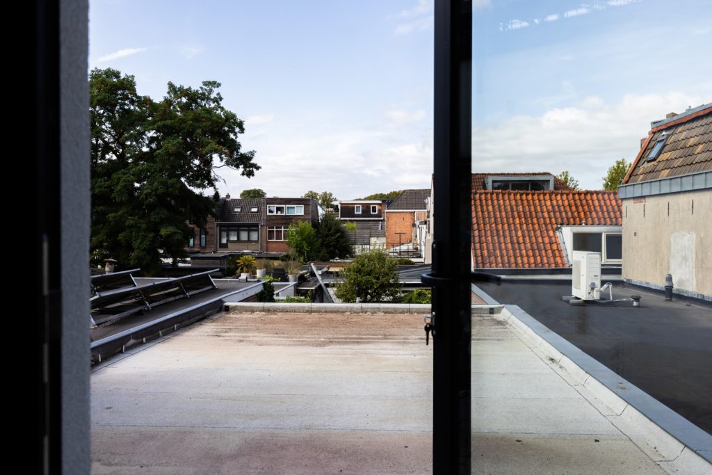 Vanuit de slaapkamer heb je toegang tot het balkon aan de achterzijde, voorzien van een nette houten vlonder – een fijne buitenruimte midden in de stad.