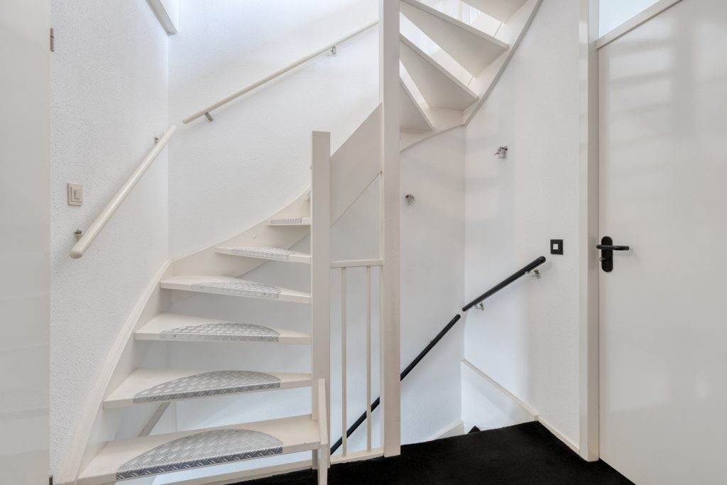 De overloop is ruim en licht.