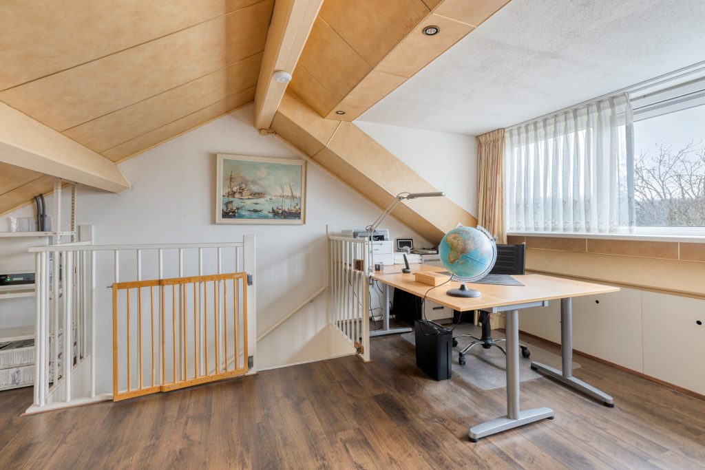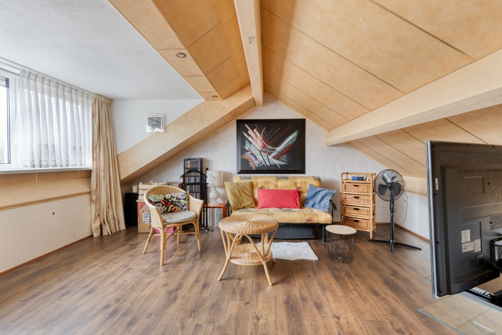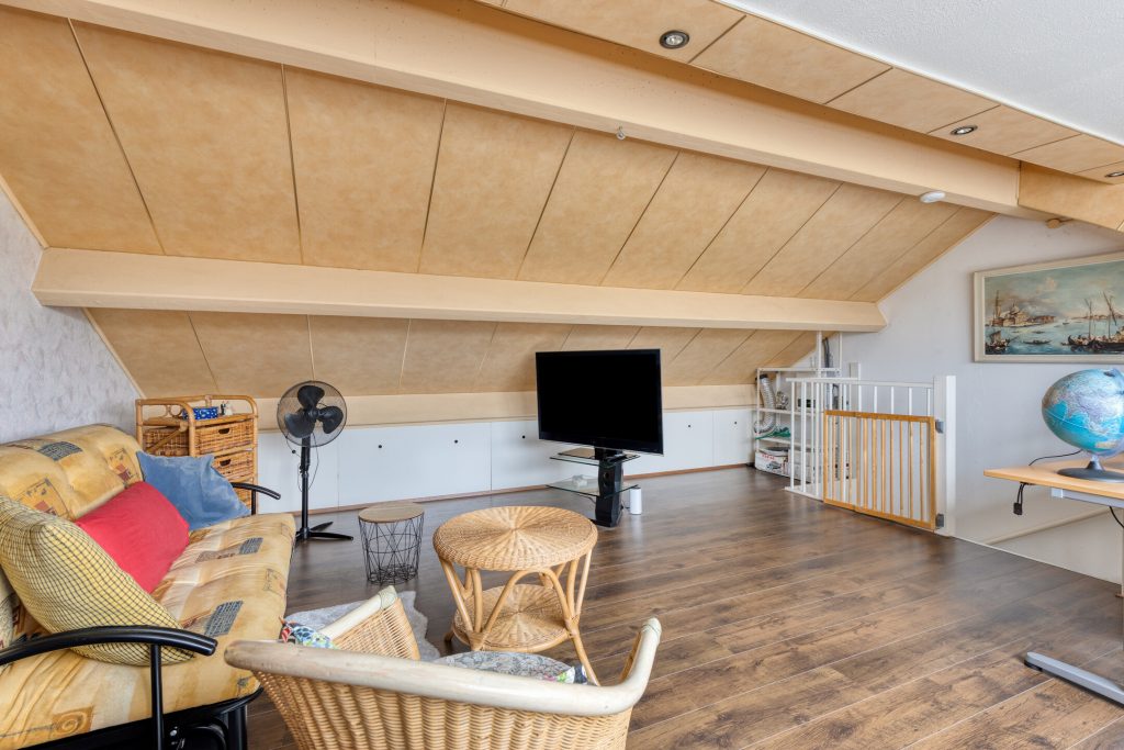 Via een vaste trap bereikt u de tweede verdieping met een grote dakkapel. Deze verdieping is ideaal als extra slaapkamer, werkruimte of hobbykamer.