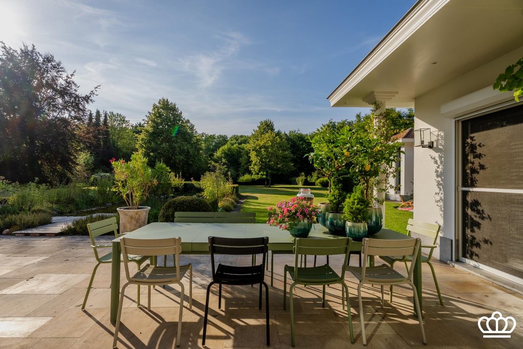 Fraai aangelegde en zeer open tuin die volledige rust en privacy biedt. Meerdere terrassen, waaronder ook een overdekt terras met verwarming.