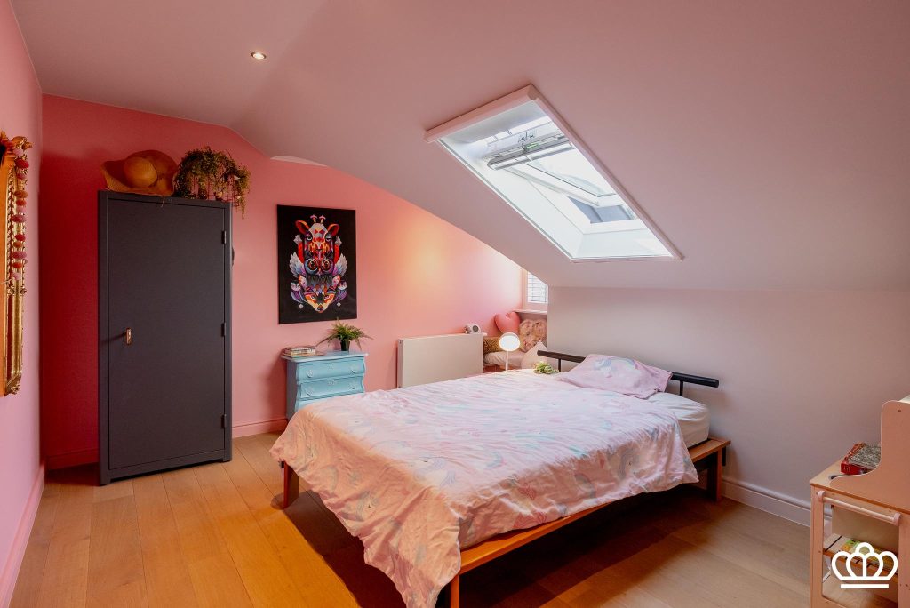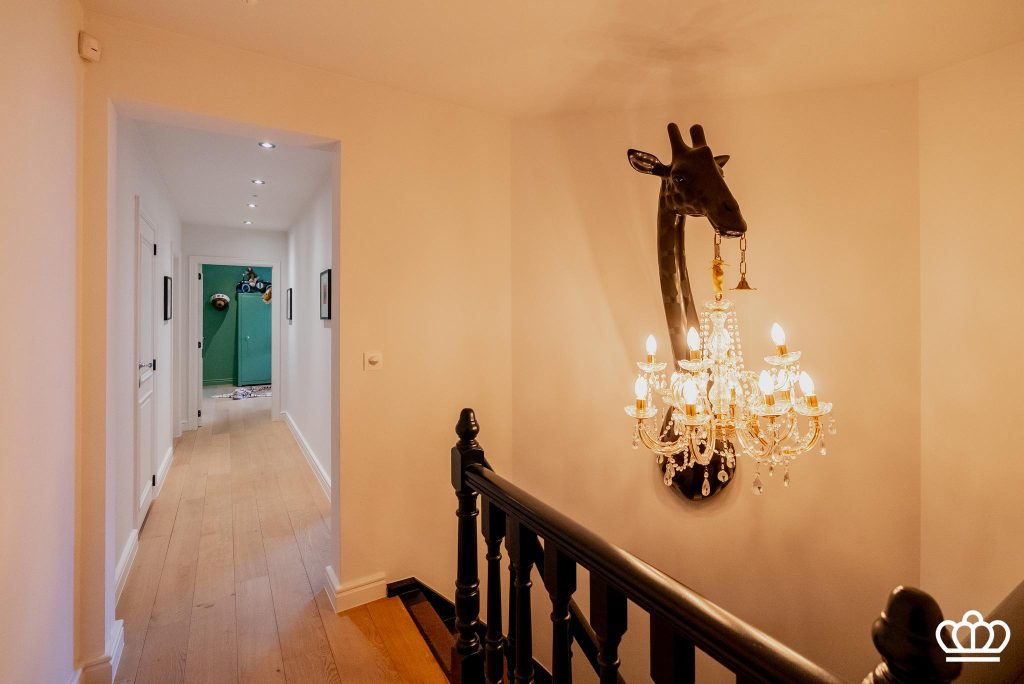 De nachthal op de eerste verdieping geeft uit op 3 slaapkamers, een badkamer en een bergzolder.