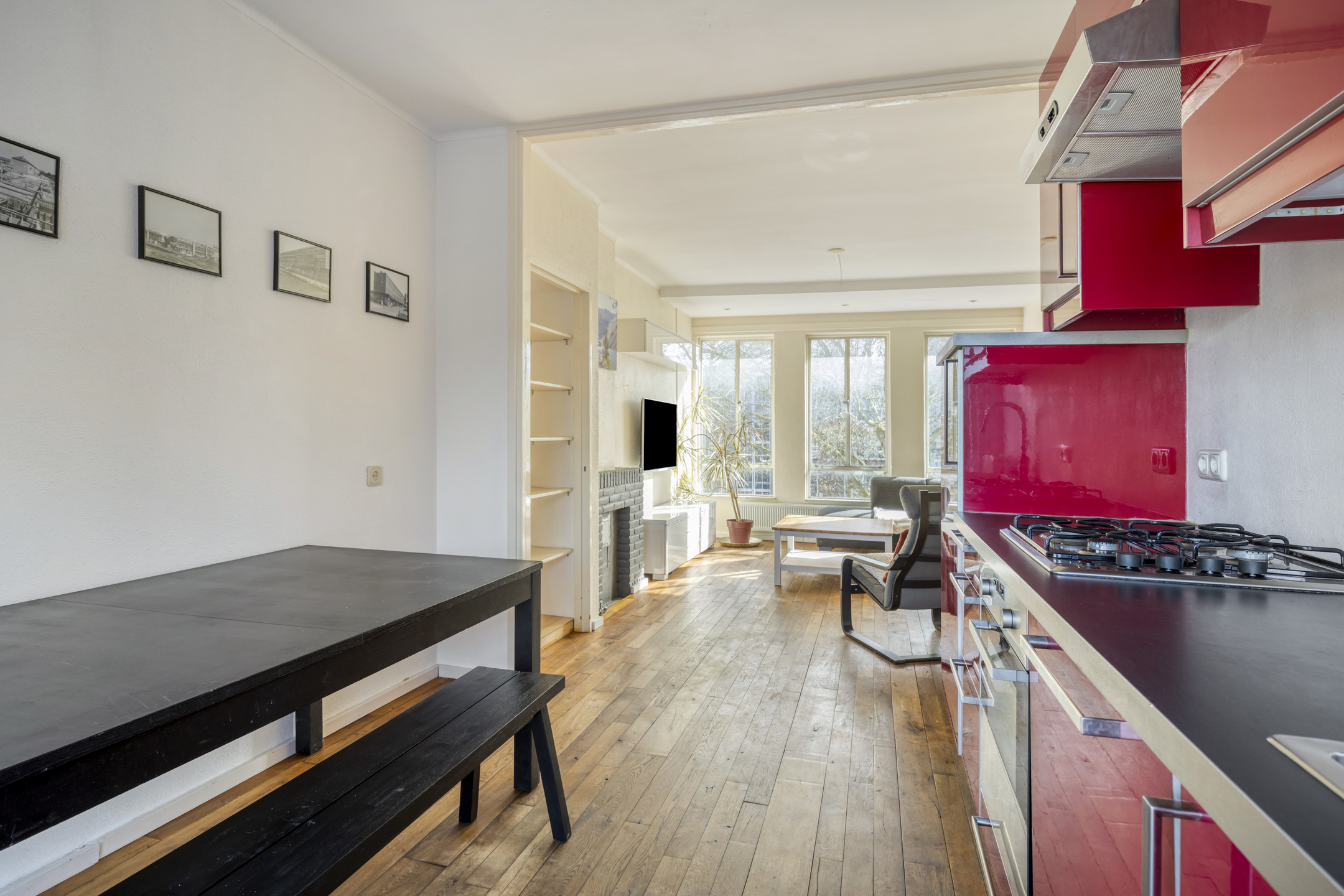 Grenzend aan de slaapkamers vindt u de woonkamer en de keuken. Deze leefruimtes kenmerken zich door de grote raampartijen, waardoor er een overvloed aan natuurlijk licht binnenvalt. De woonkamer biedt volop mogelijkheden voor een flexibele en persoonlijke indeling. De keuken is praktisch ingericht en voorzien van diverse inbouwapparatuur en voldoende kastruimte.