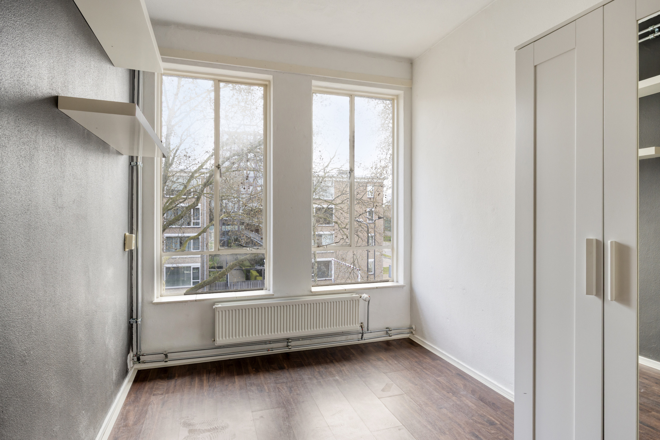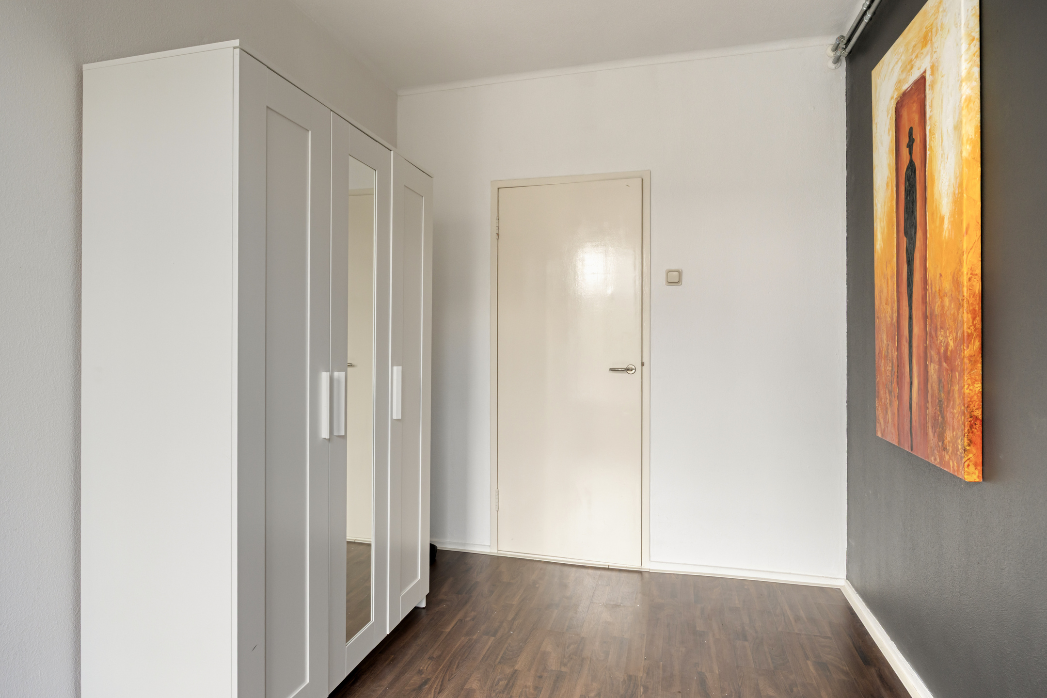 Het appartement zelf is gelegen op de tweede verdieping. Bij binnenkomst komt u in de entree, waar u direct een overzicht heeft van de indeling. Recht voor u bevinden zich twee slaapkamers. Beide kamers zijn netjes afgewerkt, bieden voldoende ruimte en beschikken over een prettig uitzicht, wat zorgt voor een aangename sfeer.