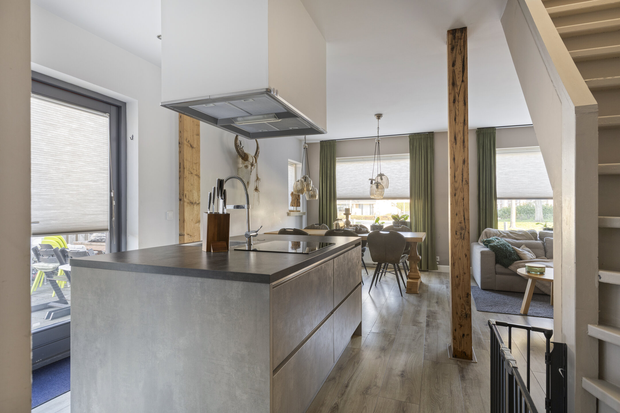 De open keuken is een droom voor kookliefhebbers: een kookeiland met inductiekookplaat, inbouwkoffiezetapparaat, vaatwasser, oven, spoelbak en een royale Amerikaanse koelkast met vriezer. Via de tuindeuren bij de keuken loop je zo de tuin in – ideaal voor lange zomeravonden of een ontspannen ontbijt in de zon.