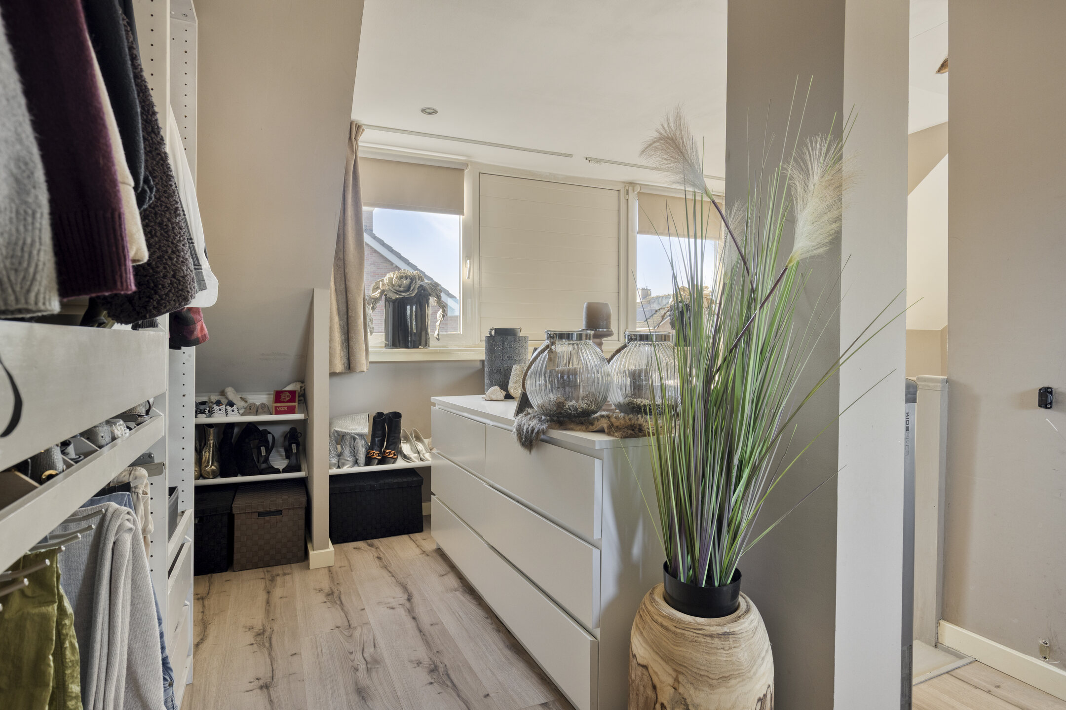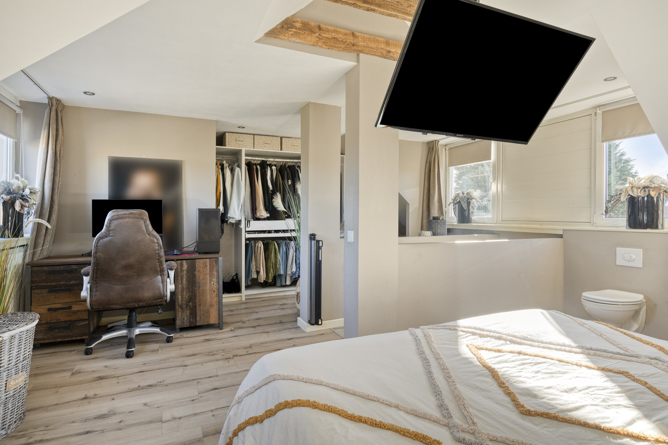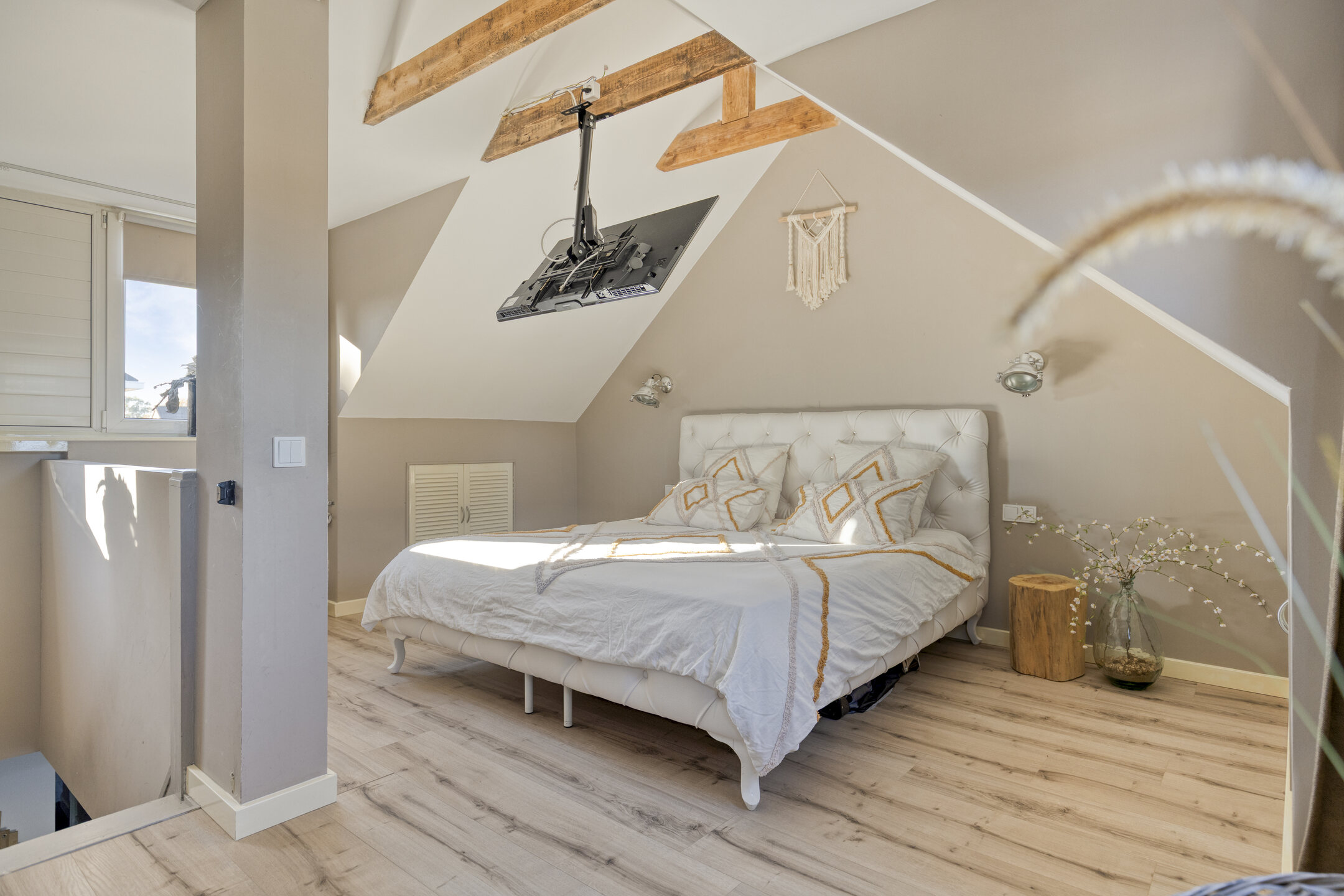 Op de eerste verdieping word je verrast door een ruime loftslaapkamer met een hotelachtige sfeer. De balken in het zicht, kunststof dakkapellen aan beide zijden, plafondspots en inloopkasten maken dit een plek om heerlijk tot rust te komen. Ook hier vind je een tweede toilet en extra bergruimte onder de knieschotten.