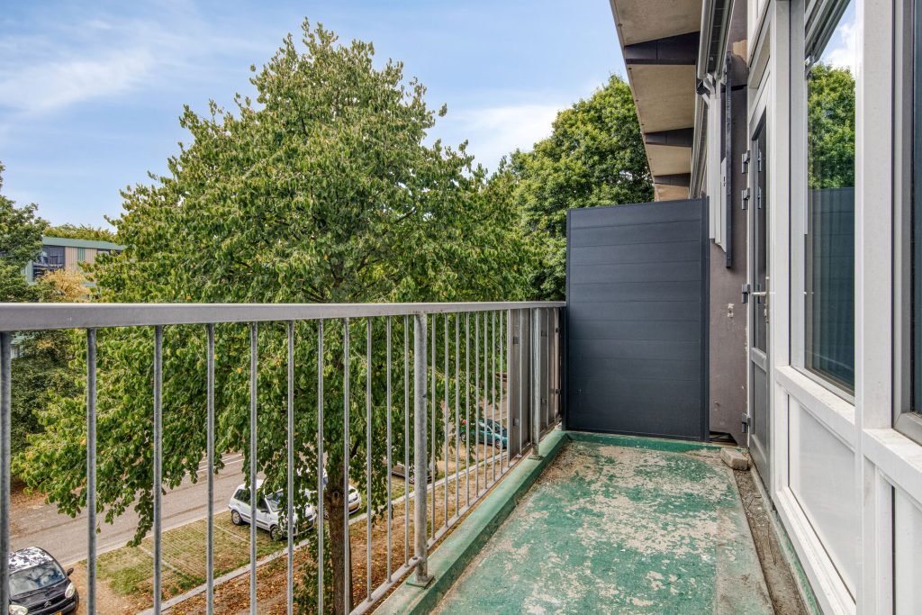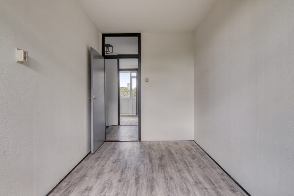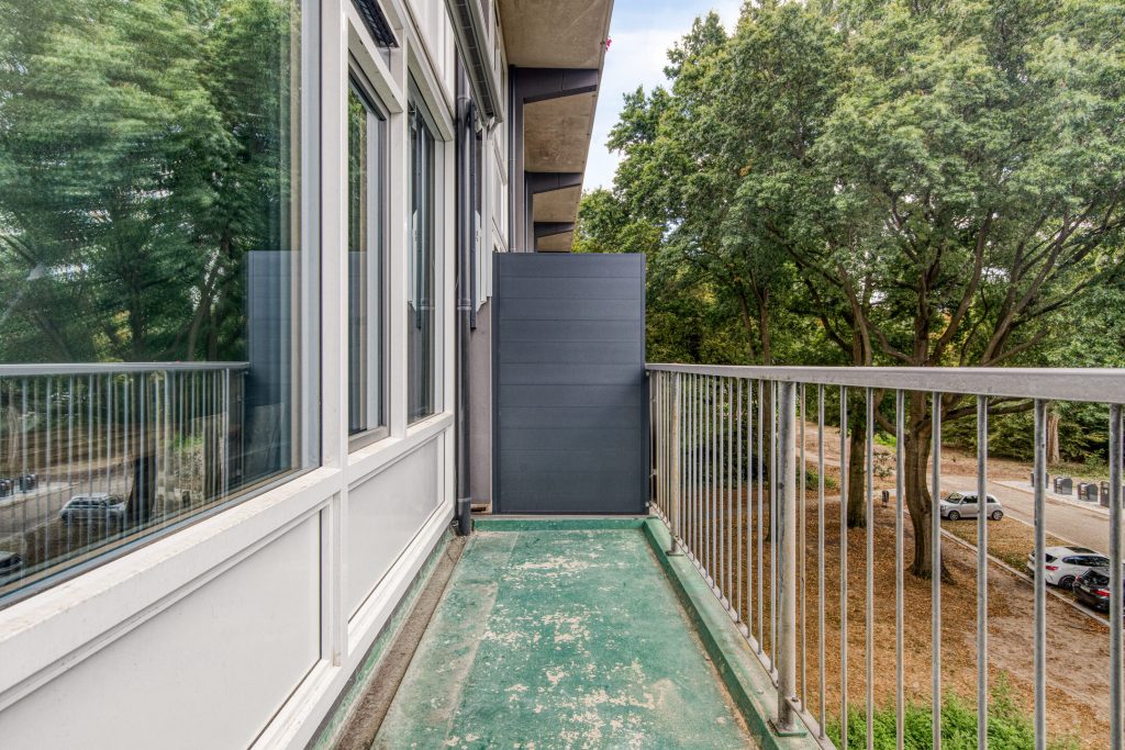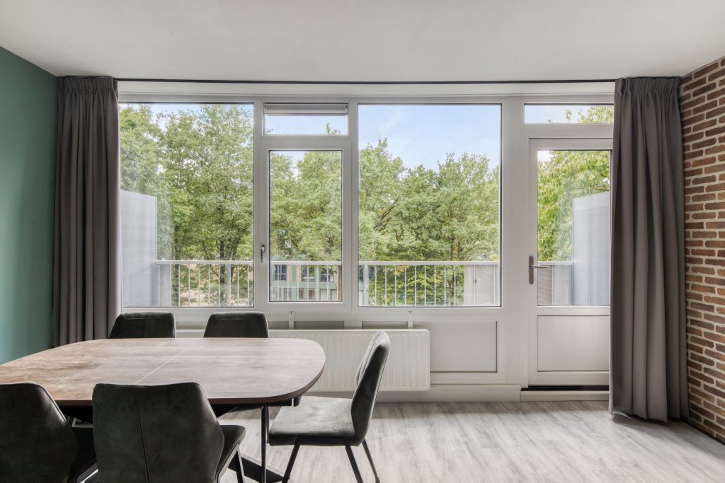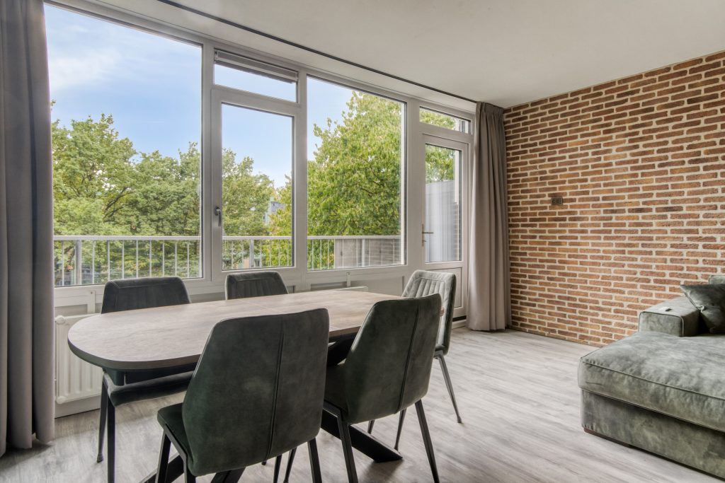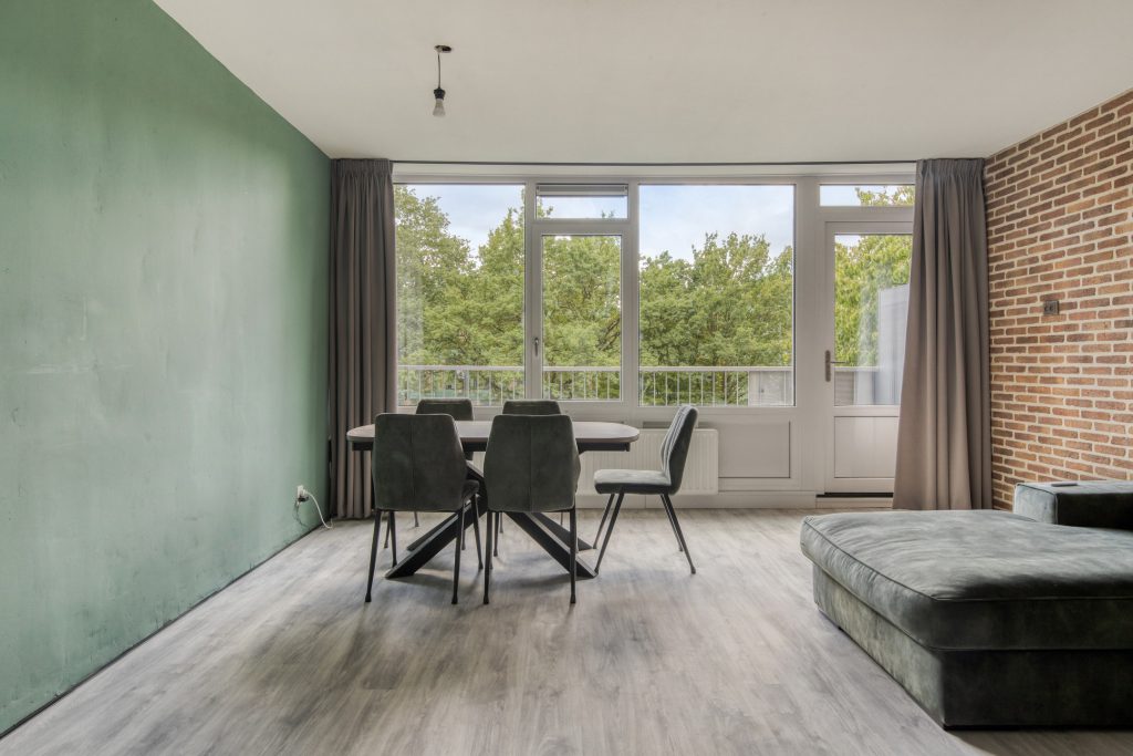 De woonkamer is een echte blikvanger: veel natuurlijk licht, een nieuwe laminaatvloer (2025) en strak afgewerkte wanden geven de ruimte een moderne uitstraling. De praktische inbouwkast en toegang tot het balkon zorgen voor extra gebruiksgemak.