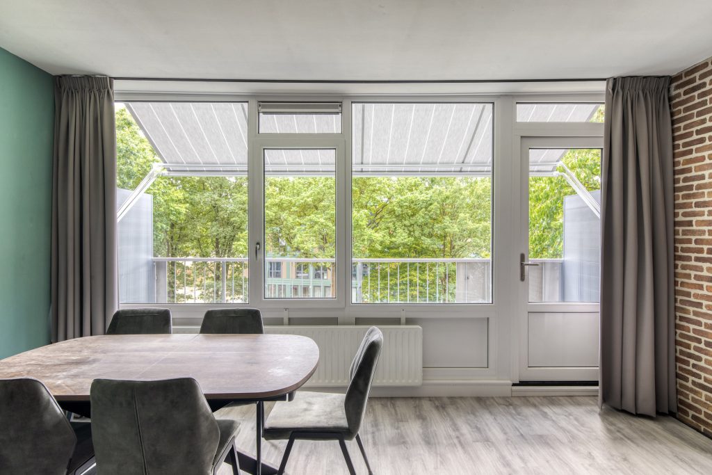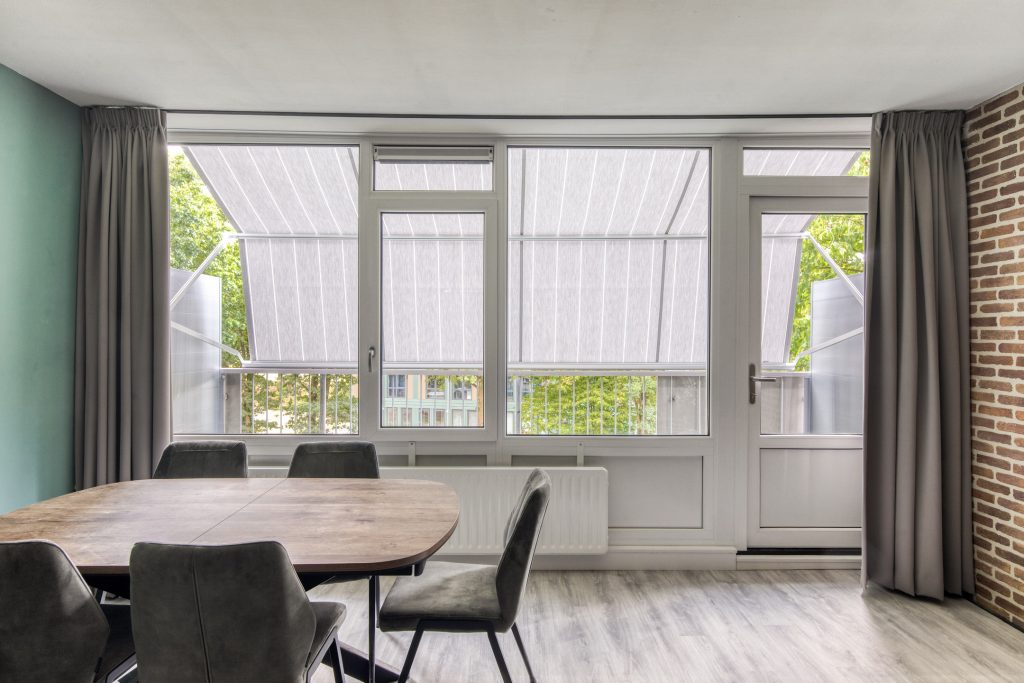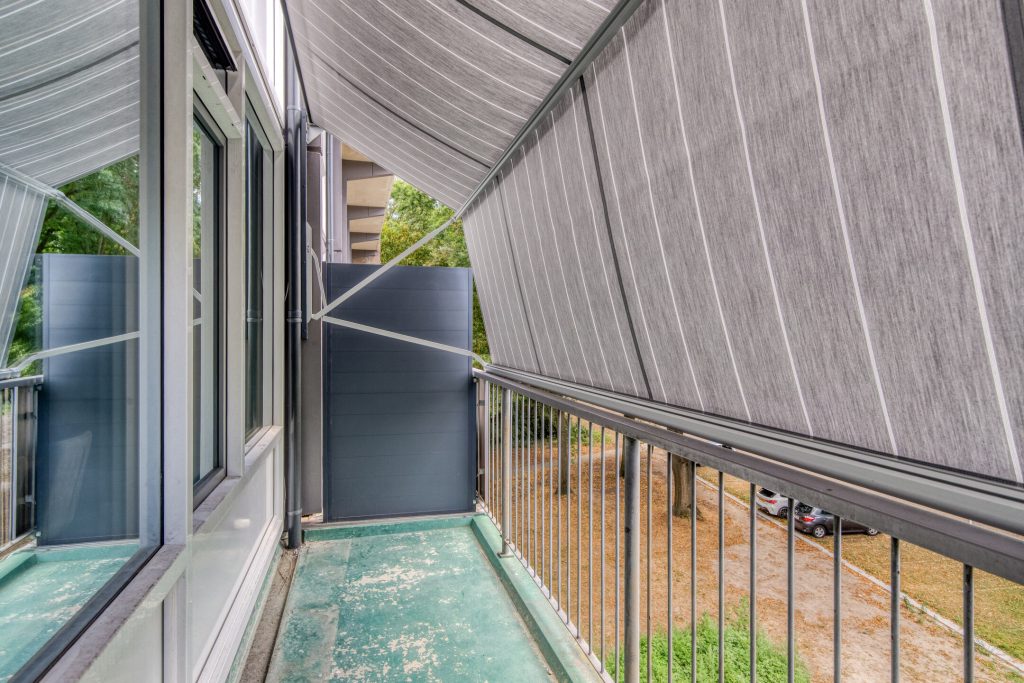 Het balkon is voorzien van een nieuwe luifel (2024) die in verschillende standen kan worden uitgeklapt, zodat je op elk moment van de dag comfortabel buiten kunt zitten.