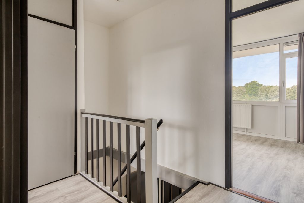Via de vernieuwde trap (2025) bereik je de bovenverdieping. De overloop geeft toegang tot drie slaapkamers en de badkamer. Alle slaapkamers zijn in 2025 vernieuwd en voorzien van een nieuwe laminaatvloer.