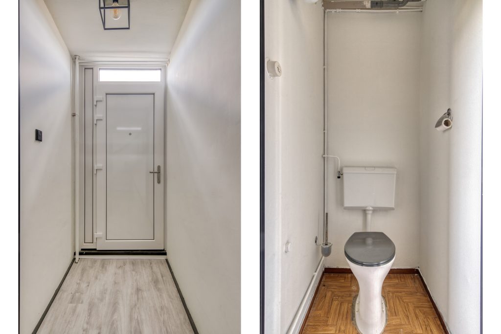 Bij binnenkomst betreed je de entree met toegang tot de hal. Vanuit hier bereik je de keuken, woonkamer, het toilet en de meterkast.
