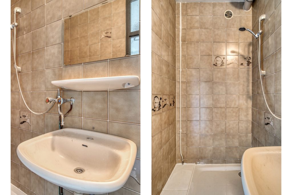 De badkamer is eenvoudig en functioneel, voorzien van een wastafel, douche en natuurlijke ventilatie. Daarnaast vind je op deze verdieping een handige inbouwkast.